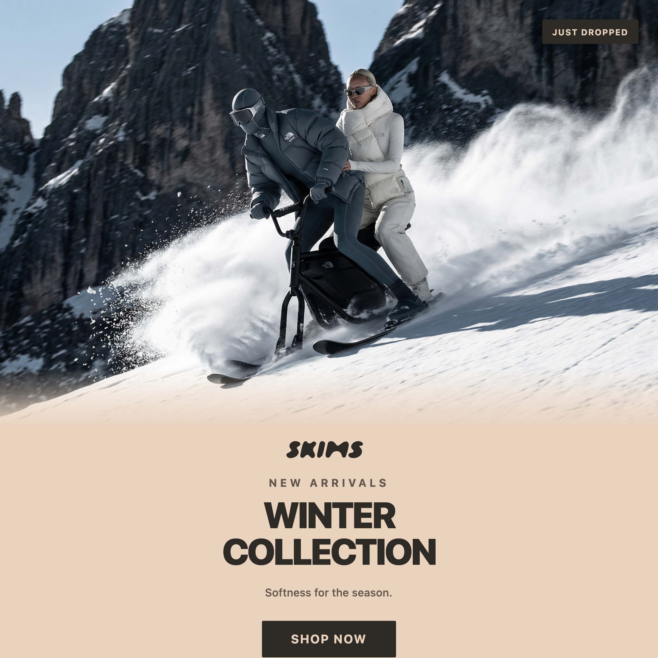 Nooit meer zonder creatives. Wij genereren studio-kwaliteit productfoto's, lifestyle shots en seizoenscampagnes op aanvraag voor je merk.